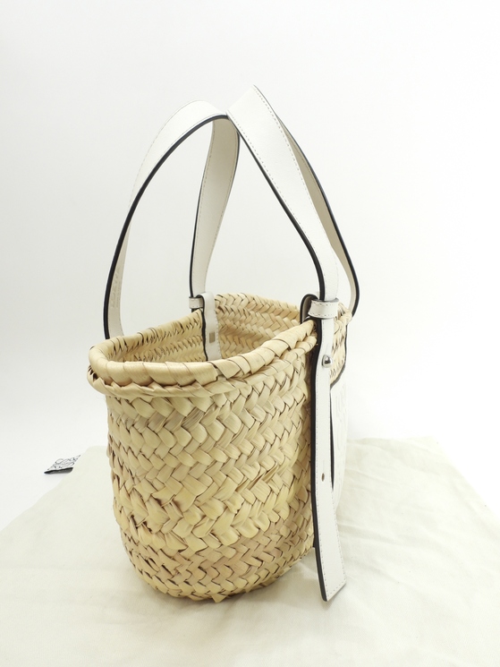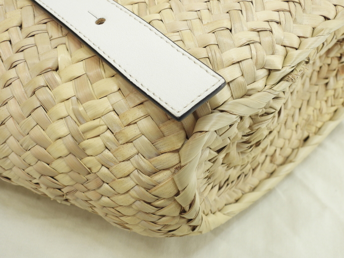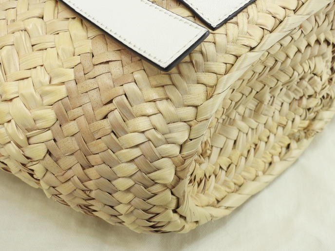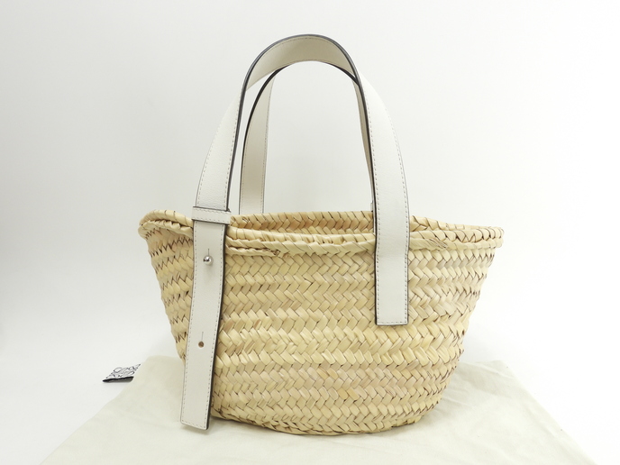 品名 : ハンドバッグ かごバッグ バスケットスモール トートバッグ メーカー : ロエベ (LOEWE) 型番・素材 : A223S93X04 ヤシの葉/カーフレザー ライン・色 : ナチュラル/ホワイト シルバー金具 参考定価 : 82500円 サイズ : W20(底)-34(上部) x H17.5 x D13 x G44-51 cm 製造番号 : 412004 総重量 : 400g 本体重量 : 270g 付属品 : 写真の中に写っているものです 情報 : ボディはスレ・汚れもなく綺麗です。底部淵にスレが少しございます。ハンドルはスレ・汚れ・弱りもなく状態は良いです。バッグ内はシミ・汚れもなく綺麗です。金具部分は薄スレが少しございますが、メッキ剥げはございません。 #Loewe #Basket #Small #HandBag #ToteBag #Natural #White #80%new #authentic #Palm #Calf #A223S93X04 #Silver #secondhand #wholeSale #haibanya #aisai-jp #転売可