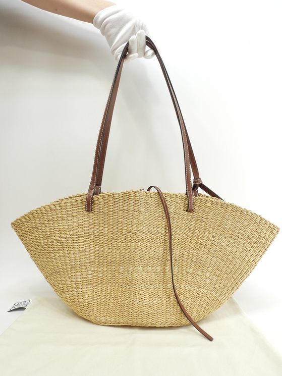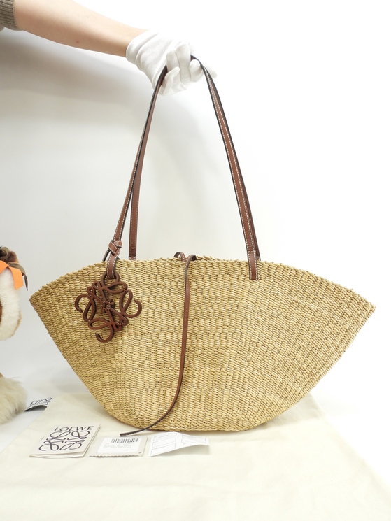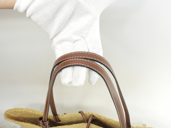 品名 : ショルダーバッグ かごバッグ シェル バスケットバッグスモール トートバッグ メーカー : ロエベ (LOEWE) 型番・素材 : A223096X01 エレファントグラス/カーフレザー ライン・色 : ナチュラル/タン 参考定価 : 89100円 サイズ : W20(底)-48(上部) x H21.5 x D13 x G60 cm 製造番号 : 412036 総重量 : 470g 本体重量 : 350g 付属品 : 写真の中に写っているものです 情報 : ボディはスレ・小傷・削れがちょこちょこございますが、目立つダメージはございません。底部角・淵に気になるスレはございません。ショルダーストラップはスレ・汚れ・弱りもなく状態は良いです。バッグ内はシミ・汚れもなく綺麗です。 #Loewe #Shell #Basket #Bag #Small #HandBag #ToteBag #ElephantGrass #Leather #Natural #Pecan #75%new #authentic #A223096X01 #secondhand #wholeSale #haibanya #aisai-jp #転売可