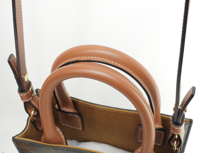 品名 : ショルダーストラップ付ハンドバッグ ポシェット 斜め掛けショルダーバッグ クロスボディバッグ ミニバーティカルカバ メーカー : セリーヌ (CELINE) 型番・素材 : 194372BZK.04LU PVC-カーフレザー ライン・色 : トリオンフ柄 シャインゴールド金具 参考定価 : 214500円 サイズ : W16.8 x H20 x D6 x G23 x L108-110 cm 製造番号 : A-GA-0213、S-AT-5212 総重量 : 840g 本体重量 : 310g 付属品 : 写真の中に写っているものです 情報 : ボディはスレ・汚れもなく綺麗です。底部角にスレはございません。ハンドルは薄汚れが少しございますが、スレ・弱りもなく状態は良いです。ショルダーストラップはスレ・汚れ・弱りもなく状態は良いです。バッグ内は薄汚れが少しございますが、酷いダメージはございません。金具部分はメッキ剥げもなくピカピカです。 #Celine #HandBag #Strap #Mini #Vertical #Caba #VerticalCaba #TRIOMPHE #PVC #Leather #BK #Brown #75%new #authentic #Crossbody #Bag #Pochette #ShoulderBag #194372BZK #Gold #vintage #rare #secondhand #wholeSale #haibanya #aisai-jp #転売可