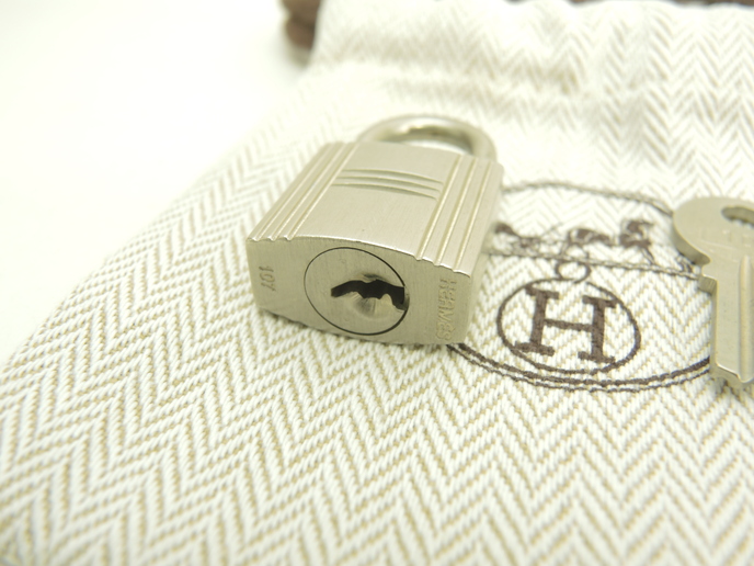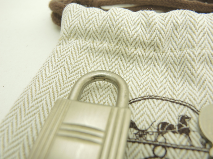 品名 : 南京錠 パドロック バッグチャーム メーカー : エルメス (HERMES) 型番・素材 : メッキ ライン・色 : マットシルバー(艶無しのタイプ) 参考定価 : 未確認 サイズ : W2 x H3.5 x D1 cm 製造番号 : 元から無し総重量 : 47g 本体重量 : 36g 付属品 : 写真の中に写っているものです 情報 : ・エルメスの南京錠です。 ・全体がメタル素材にメッキで仕上げられております。 ・キー式で開閉可能です。 ・南京錠としての役割はもちろん、ペンダントトップなどのアクセサリーとしてもお使いいただけると思います。 状態コメント : ボディは薄スレが少しございますが、メッキ剥げ・目立つダメージはなく綺麗です。淵・角に凹みはございません。U字部分の裏にスレ・メッキ剥げはございません。開閉はスムースです。 #Hermes #Padlock #Key #mat #Silver #80%new #authentic #PendantTop #BagCharm #Kelly #Barkin #107 #secondhand #wholeSale #haibanya #aisai-jp #転売可