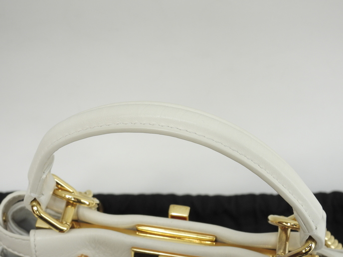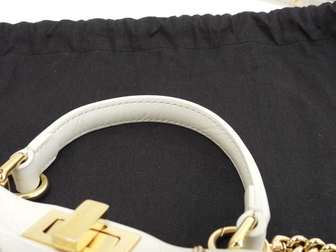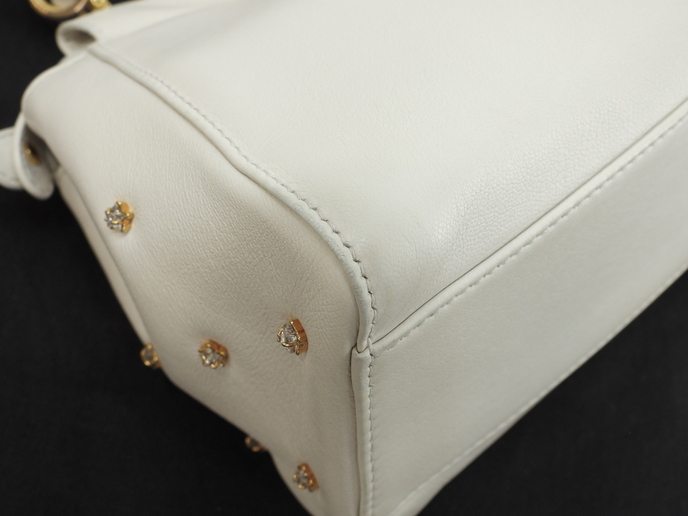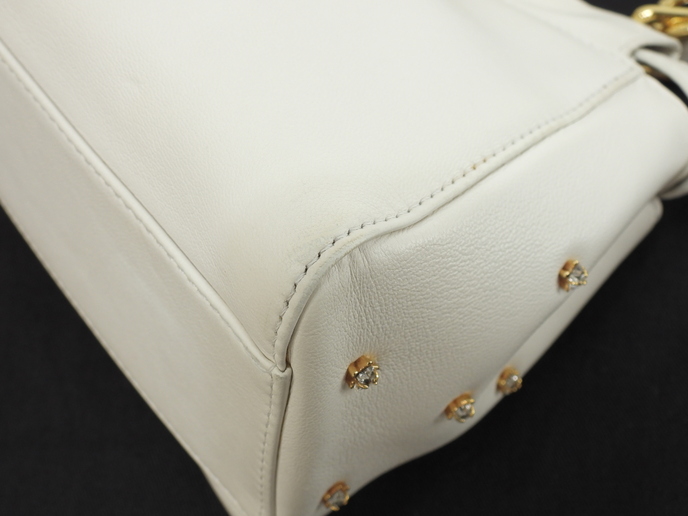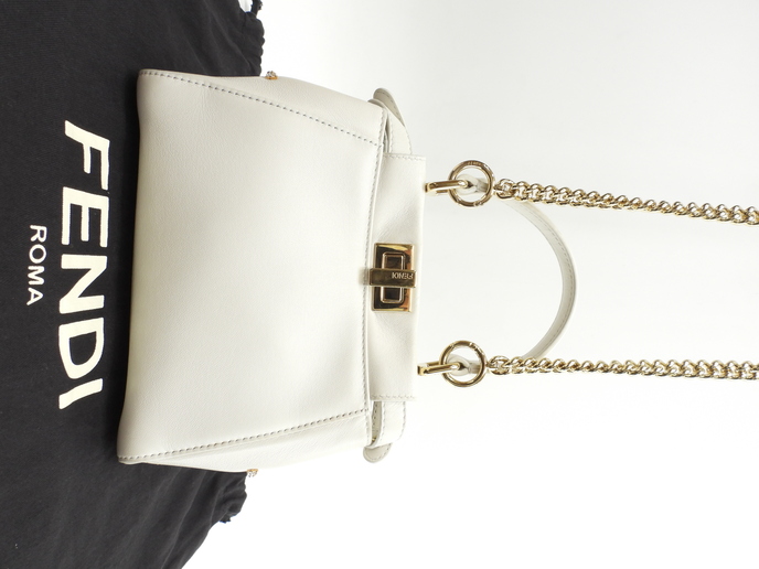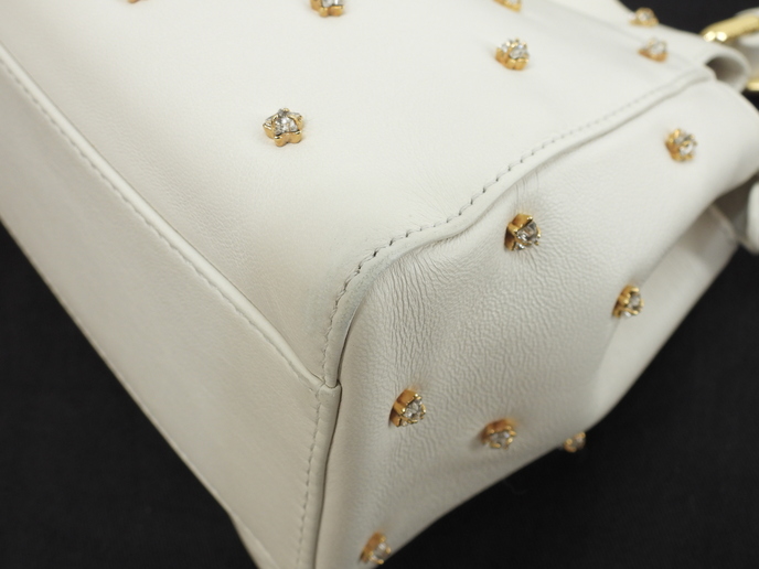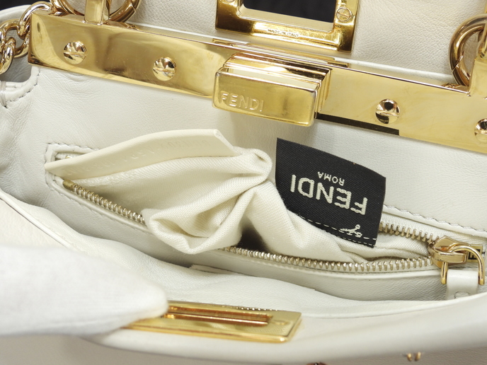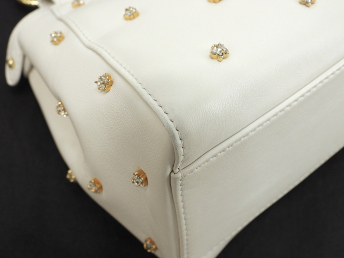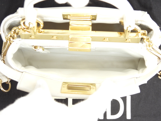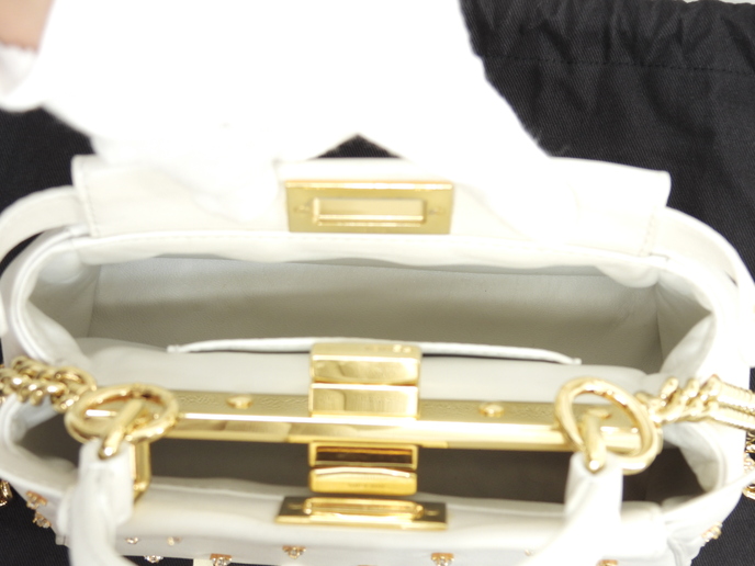 品名 : ミニピーカブー ピーカプーアイコニックミニ ショルダーストラップ付ハンドバッグ ポシェット クロスボディバッグ 斜め掛けショルダーバッグ メーカー : フェンディ (FENDI) 型番・素材 : 8BN309 ナッパレザー ライン・色 : ビジュー ホワイト ゴールド金具 参考定価 : 不明 サイズ : W19.5 x H15.5 x D9.5 x G24 x L102-120 cm 製造番号 : 8BN309-A5P4-198-8007総重量 : 620g 本体重量 : 540g 付属品 : 写真の中に写っているものです 情報 : ボディはスレ・汚れもなく綺麗です。ビジューにとれ・弱りはございません。底部角に薄スレ・薄汚れが少しございます。ハンドルはスレ・汚れ・弱りもなく状態は良いです。ショルダーストラップはスレ・汚れ・弱りもなく状態は良いです。バッグ内はシミ・汚れもなく綺麗です。金具部分は使用による薄スレ・小傷が全体的にございますが、メッキ剥げはございません。 #Fendi #Peekaboo #MiniPeekaboo #ICONIC #Mini #White #Nappa #Leather #80%new #authentic #HandBag #Strap #Bijou #Studs #8BN309 #Gold #secondhand #wholeSale #haibanya #aisai-jp #転売可