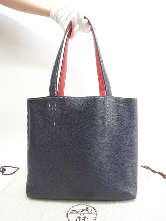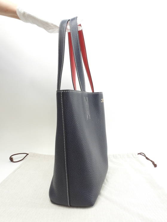 品名 : ドゥブルサンス36 (Double Sens 36) トートバッグ ハンドバッグ ショルダーバッグ メーカー : エルメス (HERMES) 型番・素材 : リバーシブル トリヨンクレマンスレザー ライン・色 : ネイビー/ピンク 参考定価 : 不明 サイズ : W28 x H26.5 x D10 x G46 cm 製造番号 : D刻総重量 : 720g 本体重量 : 580g 付属品 : 写真の中に写っているものです 情報 : ボディはスレ・汚れもなく綺麗です。底部角にスレはほとんどございません。ハンドルはスレ・汚れ・弱りもなく状態は良いです。バッグ内はシミ・汚れもなく綺麗です。 #Hermes #DoubleSens #DoubleSens36 #TaurillionClemence #Taurillion #Clemence #Leather #Navy #Pink #Blue #80%new #authentic #reversible #Bag #ToteBag #HandBag #secondhand #wholeSale #haibanya #aisai-jp #転売可