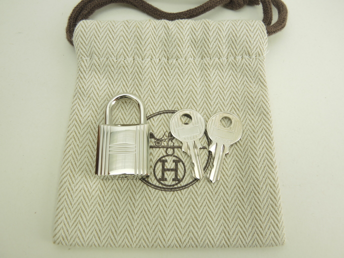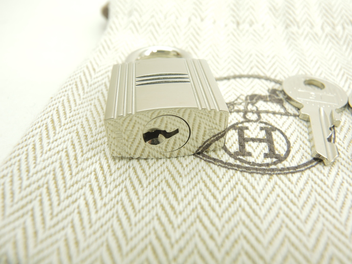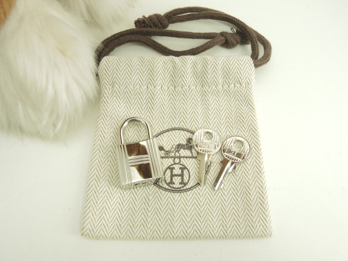 品名 : 南京錠 パドロック バッグチャーム メーカー : エルメス (HERMES) 型番・素材 : メッキ ライン・色 : シャインシルバー(つるつるピカピカのタイプ) 参考定価 : 未確認 サイズ : W2 x H3.5 x D1 cm 製造番号 : 0151総重量 : 49g 本体重量 : 39g 付属品 : 写真の中に写っているものです 情報 : ・エルメスの南京錠です。 ・全体がメタル素材にメッキで仕上げられております。 ・キー式で開閉可能です。 ・南京錠としての役割はもちろん、ペンダントトップなどのアクセサリー・バッグチャームとしてもお使いいただけると思います。バーキンやケリー、ボリードの付属品としてもお使いいただけます。 状態コメント : ボディは擦れもほとんどなく綺麗です。コーナーにスレ・凹み・削れはございません。Dリングの裏にメッキ剥げはございません。開閉はスムースです。 #Hermes #Padlock #Key #Shine #Silver #90%new #authentic #PendantTop #BagCharm #Kelly #Barkin #31 #secondhand #wholeSale #haibanya #aisai-jp #転売可