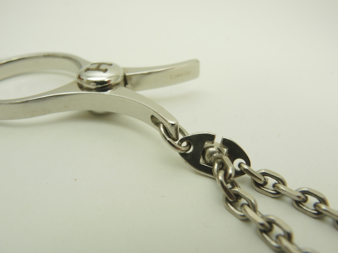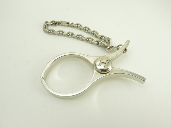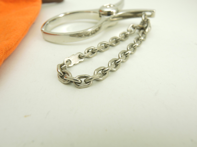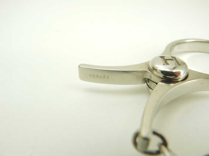 品名 : バッグチャーム キーリング グローブフォルダー メーカー : エルメス (HERMES) 型番・素材 : メッキ(メタル) ライン・色 : シャインシルバー(つるつるピカピカのタイプ) 参考定価 : 未確認 サイズ : W6 x H2.9 x D0.5 x L7 cm 製造番号 : 元からなし総重量 : 35g 本体重量 : 26g 付属品 : 写真の中に写っているものです 情報 : ・エルメスのハサミ型キーリングです。 ・全体がメタル素材にメッキで仕上げられております。 ・開閉はバネ式です。 ・キーホルダーやバッグチャームなどのアクセサリーとしてお使いいただけます。 状態コメント : ボディは使用による薄スレが全体的にございますが、目立つダメージはございません。開閉部分に弱りはございません。キーチェーン部分は弱りはなく状態は良いです。淵に擦れによるメッキ剥げが少しございます。 #Hermes #BagCharm #GloveHolder #Scissors #Key #Shine #Silver #70%new #authentic #Kelly #Barkin #Charm #Accessories #secondhand #wholeSale #haibanya #aisai-jp #転売可