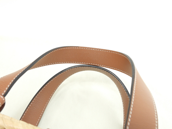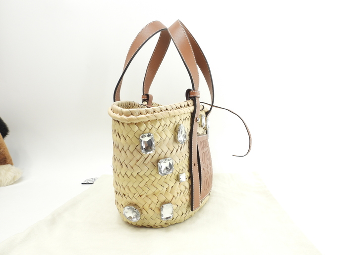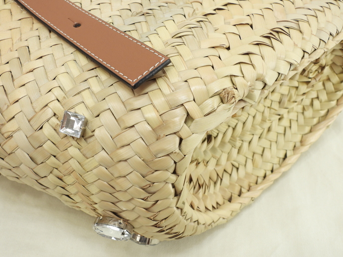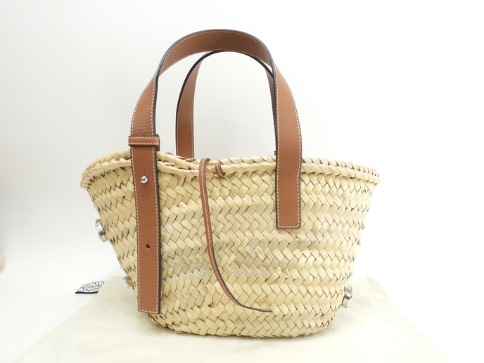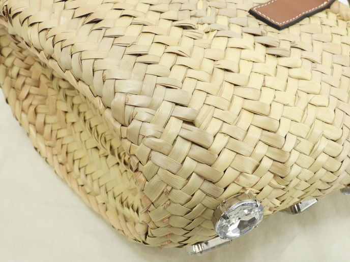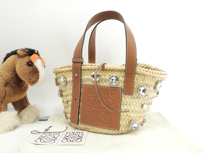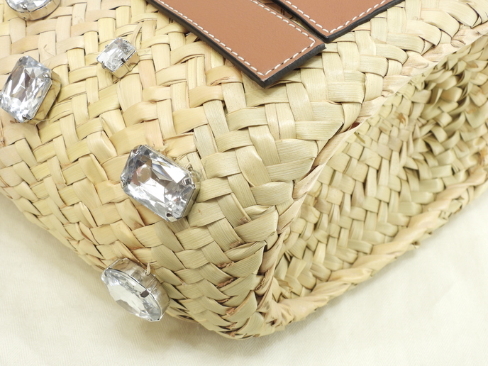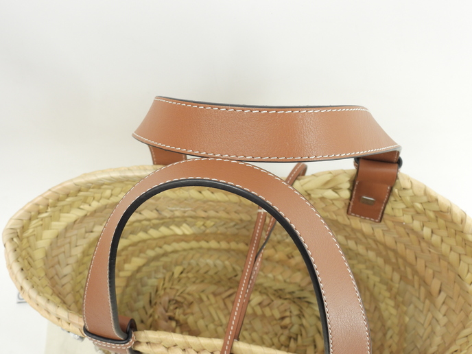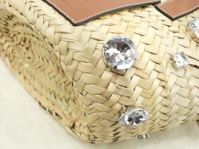 品名 : ハンドバッグ かごバッグ バスケットスモール トートバッグ メーカー : ロエベ (LOEWE) 型番・素材 : ヤシの葉/カーフレザー ライン・色 : ビジュー付き限定 ナチュラル/タン シルバー金具 参考定価 : 不明 サイズ : W20(底)-36(上部) x H19 x D13.5 x G44-51 cm 製造番号 : 411903 総重量 : 500g 本体重量 : 370g 付属品 : 写真の中に写っているものです 情報 : ボディはスレ・汚れもなく綺麗です。ラインストーンにとれ・ぐらつきはございません。底部淵に薄汚れが少しございます。ハンドルは気になるスレ・汚れ・弱りもなく状態は良いです。バッグ内はシミ・汚れもなく綺麗です。金具部分はメッキ剝げもなくピカピカです。 #Loewe #Basket #Small #RhineStone #Rhine #Stone #HandBag #ToteBag #Natural #Brown #85%new #authentic #Palm #Calf #Bijou #Limited #Silver #secondhand #wholeSale #haibanya #aisai-jp #転売可