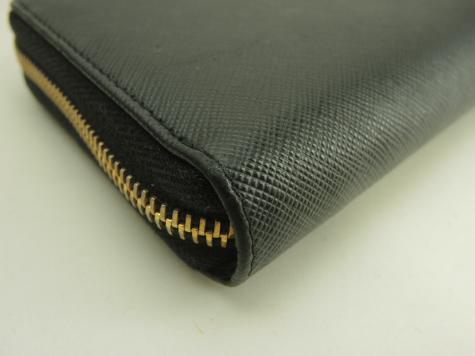 品名 : ラウンドジップ長財布 ロングウォレット ジップアラウンドウォレット ドキュメントホルダー ジッピーオーガナイザー メーカー : プラダ (PRADA) 型番・素材 : サフィアーノレザー ライン・色 : メタルロゴ ノワール(NERO) ゴールド金具 参考定価 : 不明 サイズ : W20 x H10.5 x D2.5 cm 製造番号 : 164総重量 : 439g 本体重量 : 262g 付属品 : 写真の中に写っているものです 情報 : ボディは薄スレ・型崩れが少しございますが、目立つダメージはございません。角・湾曲部など淵に薄スレが少しございます。財布内は薄汚れが全体的に少しございますが、目立つダメージはございません。コインケース内は銭汚れが全体的にございます。ファスナーの開閉はスムースです。金具部分は金具同士が擦れる部分にメッキ剥げが少しございますが、全体的に綺麗です。 #Prada #LongWallet #ZipAroundWallet #Saffiano #BK #Nero #70%new #authentic #Metal #Logo #RaundZip #Wallet #DocumentHolder #Document #Holder #ZippyOrganizer #Gold #secondhand #wholeSale #haibanya #aisai-jp #転売可