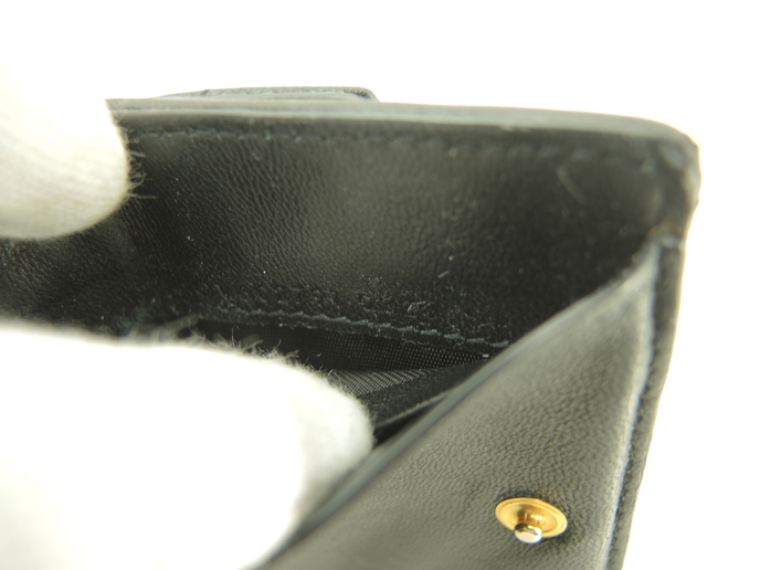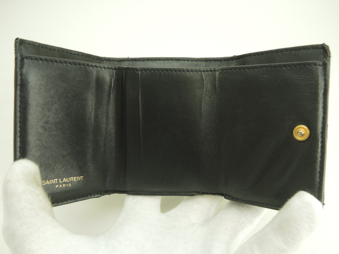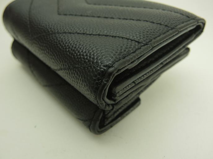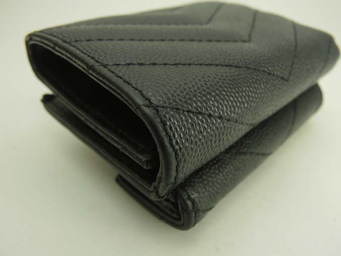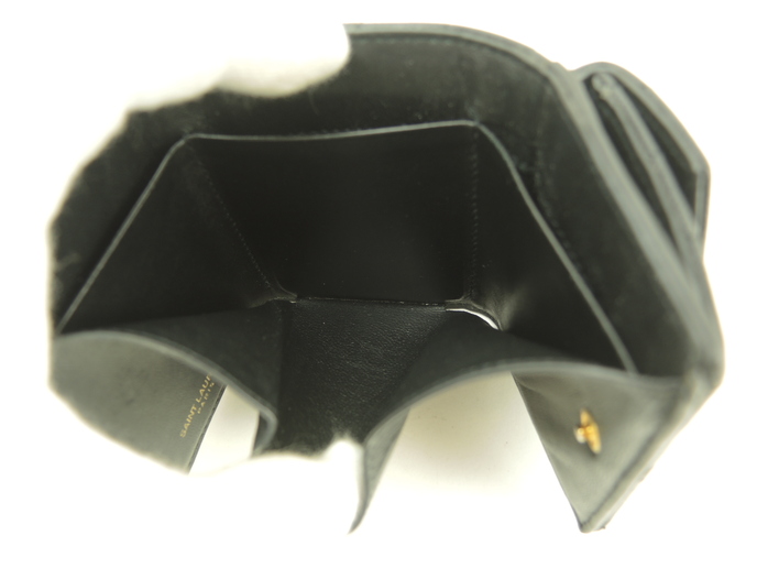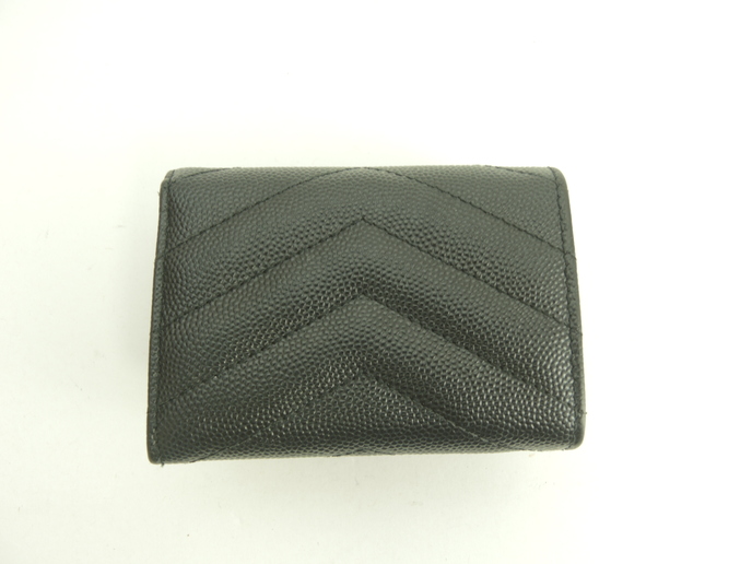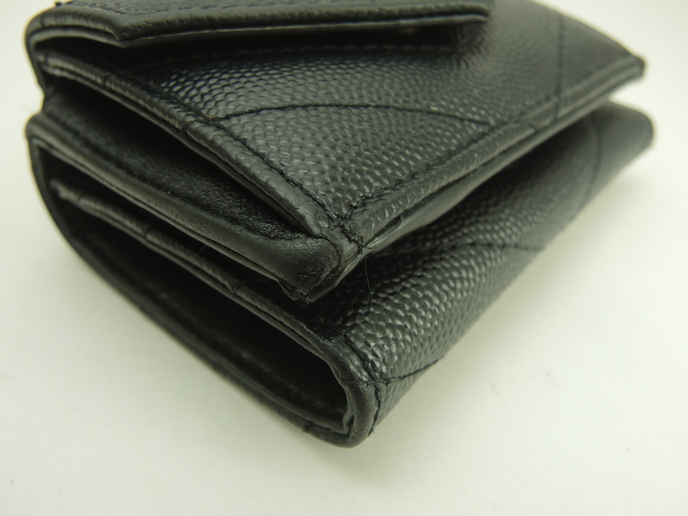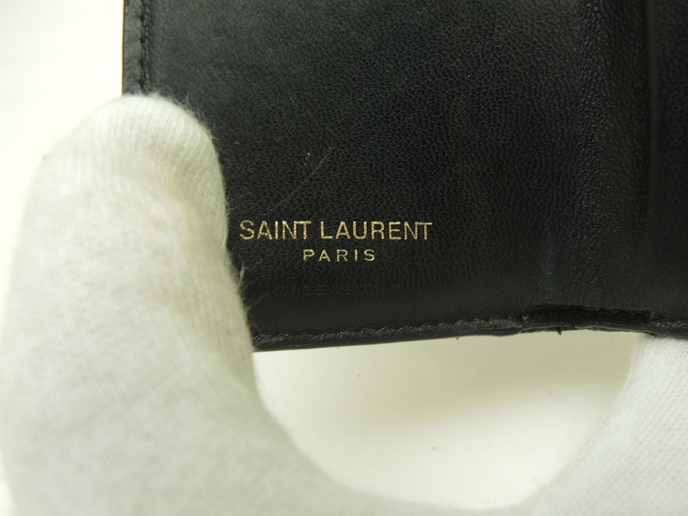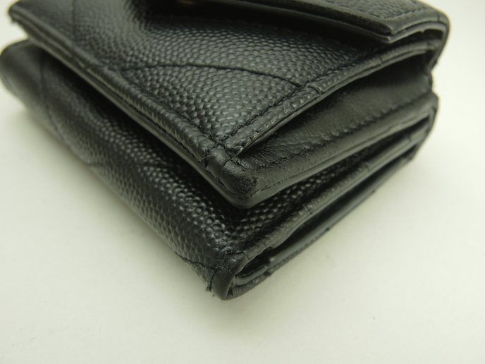 品名 : 3つ折りWホック財布 スモールウォレット ミニ財布 ミニウォレット メーカー : サンローラン (Saint Laurent) 型番・素材 : 602791 型押しカーフレザー(キャビアスキン) ライン・色 : モノグラム・サンローラン ブラック ゴールド金具 参考定価 : 不明 サイズ : W9.5 x H7 x D4 cm 製造番号 : NONV602791-0320総重量 : 165g 本体重量 : 79g 付属品 : 写真の中に写っているものです 情報 : ボディは薄スレ・しっとり感が全体的にあり使用感がございます。角・湾曲部など淵に薄スレが全体的にございます。財布内はシワがございますが、目立つダメージはございません。札入れ内は薄スレ・薄汚れが少しございます。コインケース内は銭汚れが全体的にございます。ホックボタンは弱りもなくシッカリと閉まります。正面金具は薄スレ・メッキ剥げが全体的にございます。 #SaintLaurent #Saint #Laurent #Origami #Tiny #TinyWallet #MiniWallet #MiniWallet #Mini #SmallWallet #Small #Wallet #Lether #Black #45%new #authentic #YSL #602791 #Gold #secondhand #wholeSale #haibanya #aisai-jp #転売可
