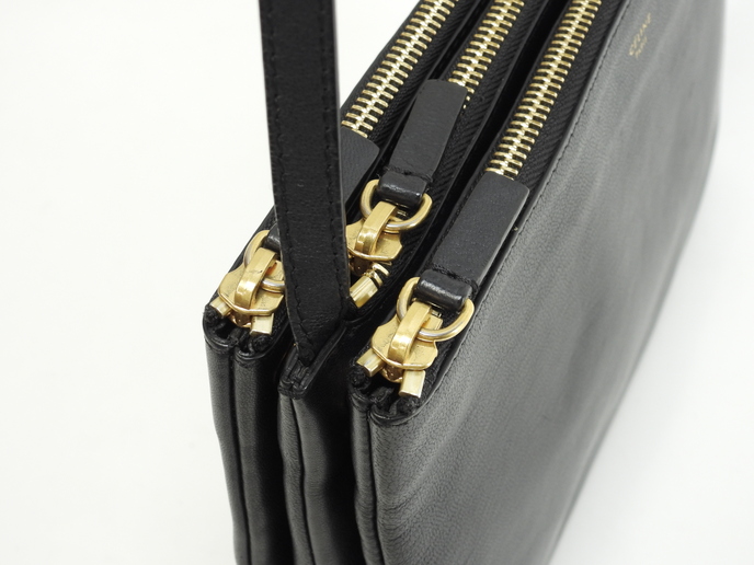 品名 : トリオ ラージ ポシェット クラッチバッグ クロスボディバッグ 斜め掛けショルダーバッグ ポーチ メーカー : セリーヌ (CELINE) 型番・素材 : 171453ETA.070C スムースラムスキンレザー ライン・色 : ブラック ヴィンテージトゴールド金具 参考定価 : 165000円 サイズ : W24.5 x H17.5 x D4.5 x L98-118 cm 製造番号 : F-MM-0174 総重量 : 340g 本体重量 : 340g 付属品 : 写真の中に写っているものです 情報 : ボディは使用によるしわ・型崩れが全体的にございますが、気になるスレ・汚れはございません。底部角に薄スレが少しございます。ショルダーストラップはスレ・汚れ・弱りもなく状態は良いです。バッグ内はシミ・汚れもなく綺麗です。ファスナーの開閉はスムースです。ファスナーの引手革に薄スレ・薄汚れが少しございます。金具部分は金具同士が擦れる部分にメッキ薄が少しございますが、全体的に綺麗です。 #Celine #Trio #Large #TrioLarge #CrossbodyBag #Smooth #RamSkin #Leather #BK #65%new #authentic #Crossbody #Pochette #Bag #ClutchBag #Porch #171453ETA #ShoulderBag #Gold #secondhand #wholeSale #haibanya #aisai-jp #転売可