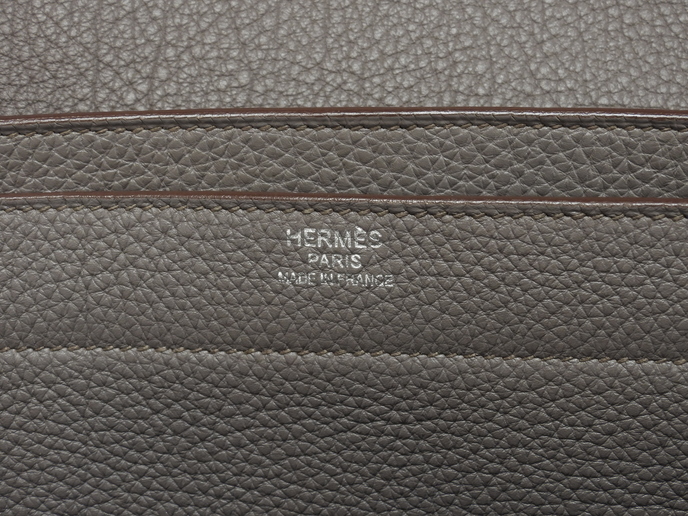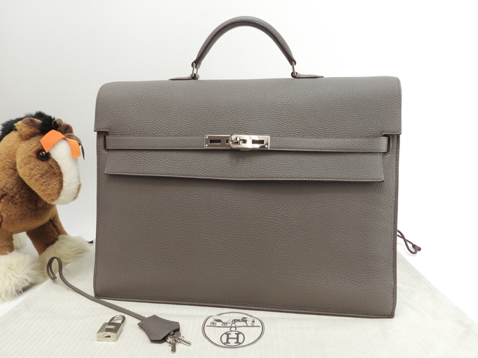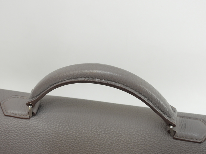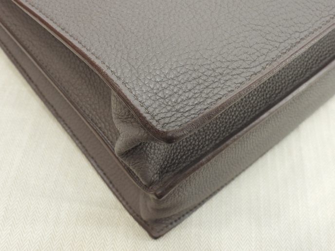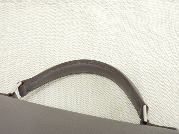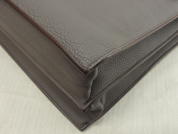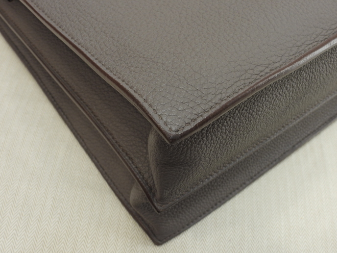 品名 : ケリーデペッシュ38 ブリーフケース 書類かばん メンズハンドバッグ ドキュメントケース メーカー : エルメス (HERMES) 型番・素材 : トリヨンクレマンスレザー ライン・色 : グリエタン シルバー金具 参考定価 : 不明 サイズ : W38 x H28 x D12 x G20 cm 製造番号 : □Q刻 総重量 : 1490g 本体重量 : 1260g 付属品 : 写真の中に写っているものです 情報 : ボディは柔らかいレザーですので型崩れ・くたっと感が元からございますが、スレ・汚れもなく綺麗です。底部角に曲がり癖が少しございますが、スレはほとんどございません。ハンドルは淵スレ・薄スレ・薄汚れが少しございますが、弱りはございません。バッグ内はシミ・汚れもなく綺麗です。正面金具は擦れもほとんどなくメッキ剥げもなくピカピカです。 #Hermes #KellyDepeches #Kelly #Depeches #TaurillonClemence #Taurillon #Leather #etain #Gray #75%new #authentic #HandBag #BusinessBag #Business #Bag #Briefcase #Documentcase #Document #Case #Silver #secondhand #wholeSale #haibanya #aisai-jp #転売可