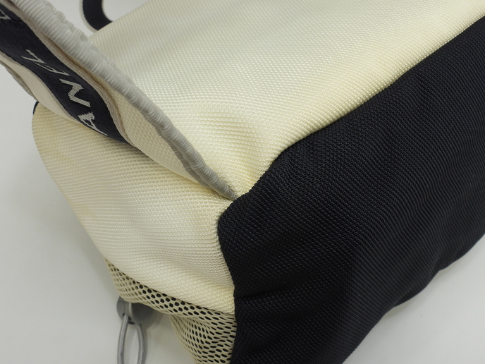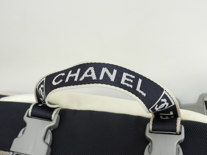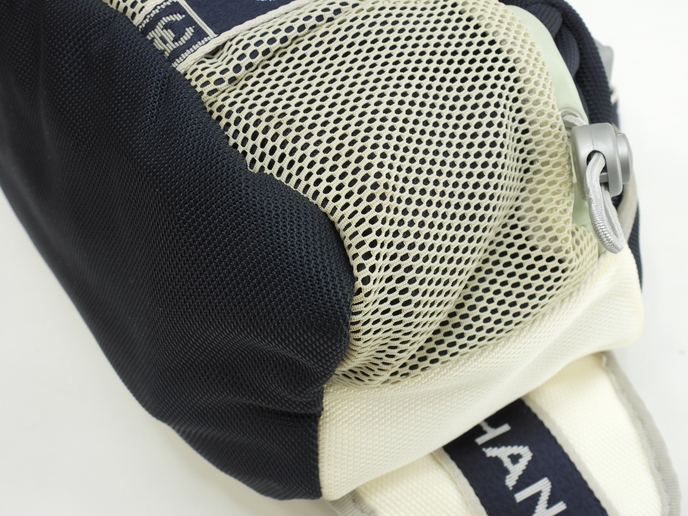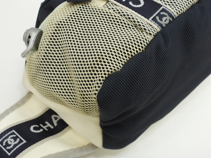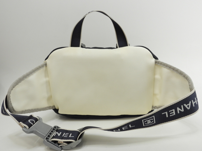 品名 :ウエストバッグ ハンドバッグ 2Way セカンドバッグ ハンドポーチ メーカー : シャネル (CHANEL) 型番・素材 : ナイロンファブリック ライン・色 : スポーツライン ネイビー/ホワイト シルバー金具 参考定価 : 不明 サイズ : W28 x H17 x D15 x G20 x L~84cm 製造番号 : 9753620 (シール有) 総重量 : 360g 本体重量 : 360g 付属品 : 写真の中に写っているものです(紙袋は付きません)。 情報 : ・シャネルのスポーツラインのウエストバッグです。 ・全体がナイロンを編みこんだ生地で仕上げられており、正面にココマークがデザインされております。 ・メインバッグの開閉は、前面のプラスティック金具のベルトを外し、その下のシングルファスナーで行います。 ・バッグ内はポケットなどなく広く使えます。 ・裏地もナイロン編み素材です。 ・両サイドにメッシュポケットが1つずつあり、正面にも小物用ファスナーポケットが1つございます。 ・底部は平らで、バッグを立たして置くことができます。 ・ウエストベルトはロゴの入ったナイロン編み素材で、スライド金具式に長さ調節可能です。長さ約~84cm(バッグ幅含む)です(取り外し不可)。 ・上部にはナイロン編み素材のグリップが付いています。長さ約20cmで、ハンドバッグとしてもお使いいただけます(取り外し・長さ調節不可)。 ・大きさは、中程度で、収納箇所がたくさんあるので便利です。 状態コメント : ボディは使用と経年による黄ばみ・薄シミ・薄汚れが全体的にございますが、酷いダメージはございません。底部角にスレはございません。グリップはスレ・汚れ・弱りもなく状態は良いです。ベルト部分は薄シミ・薄汚れが少しございますが、その他目立つダメージ・弱りはなく状態はイイです。バッグ内は気になるシミ・汚れはなく綺麗です。ファスナーの開閉は少しかためです。金具部分は経年のクスミが全体的にございます。ココマークゴム部分はスレ・汚れもなく綺麗です。 #Chanel #HandBag #WeistBag #2Way #Porch #Sports #Nylon #Navy #White #60%new #authentic #SecondBag #Bag #Silver #secondhand #wholeSale #haibanya #aisai-jp #転売可