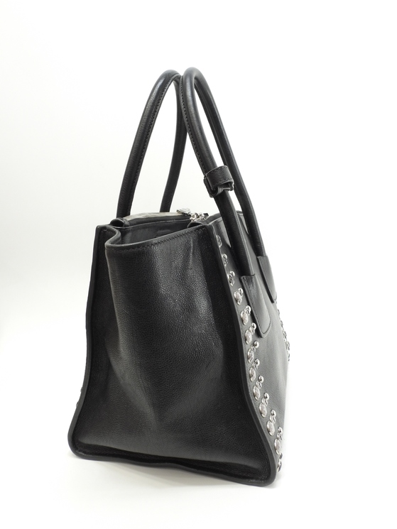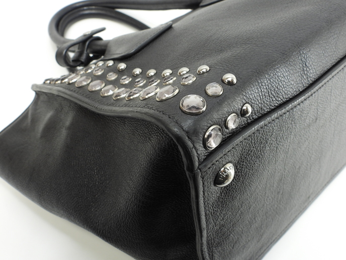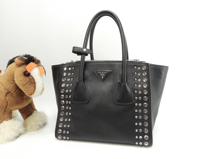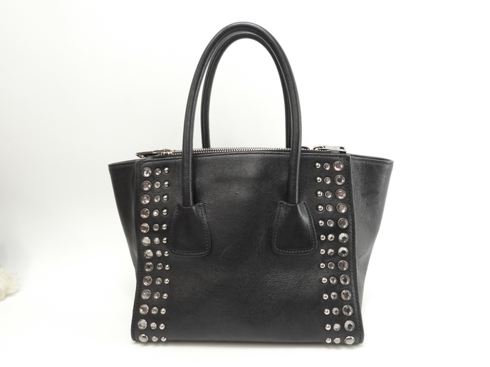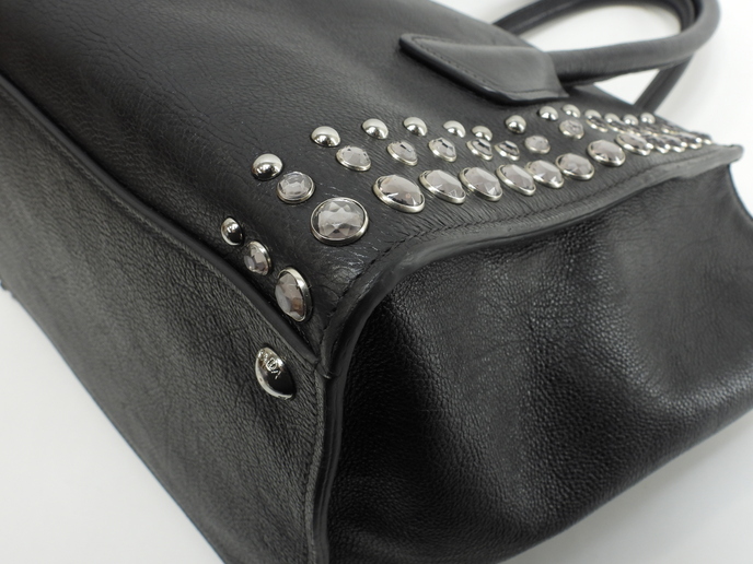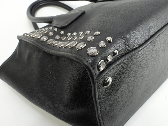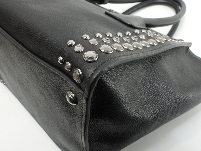 品名 : トートバッグ ハンドバッグ メーカー : プラダ (PRADA) 型番・素材 : 型押しカーフレザー ライン・色 : ラインストーン ブラック シルバー金具 参考定価 : 不明 サイズ : W27-40 x H23 x D19 x G45 cm 製造番号 : 231総重量 : 1150g 本体重量 : 1040g 付属品 : 写真の中に写っているものです 情報 : ボディは使用による薄スレ・型崩れが少しございますが、目立つダメージは無く綺麗なほうです。ビジューやスタッズはとれ・弱りはございません。底部角に薄スレが少しございます。ハンドルは薄スレ・薄汚れが少しございますが、弱りはございません。バッグ内はシミ・汚れもなく綺麗です。金具部分は薄スレが少しございますが、メッキ剥げもなくピカピカしております。 #Prada #HandBag #Lether #Nero #BK #70%new #authentic #ToteBag #Bag #Bijou #Rhinestone #Studs #Silver #secondhand #wholeSale #haibanya #aisai-jp #転売可